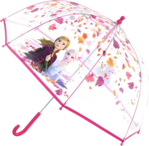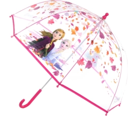 Az átlátszó gyerek esernyő FROZEN motívumokkal biztonságos és kényelmes használatot kínál a mindennapokban. Az átlátszó kivitel jobb rálátást biztosít a környezetre, a Jégvarázs témájú minták pedig vidámmá teszik minden esős sétát.