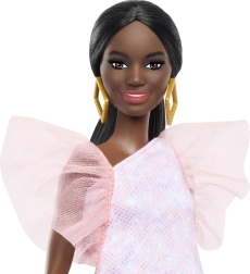 Fedezd fel a divat világát a Barbie Modell babával, amely rózsaszín, puffos ujjú ruhájával, elegáns arany fülbevalóival és kék szandáljával nyűgöz le. Ez a baba saját történetek kitalálására ösztönzi a gyerekeket, és támogatja az önkifejezést valamint a kreativitást.