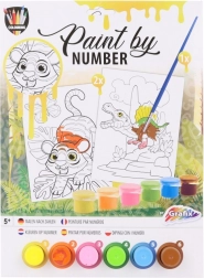 Szórakoztató számozott kifestő. A csomag 2 képet, 6 színből álló készletet és egy ecsetet tartalmaz. A csomag mérete kb. 22,5 × 31 × 2 cm. Ajánlott életkor: 5+