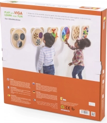 Aranyos, medve alakú fali panel a VIGA márkától színes fogaskerekekkel és szélforgókkal, amely fejleszti a gyerekek kézügyességét és gondolkodását. Forgasd meg az egyik kereket, és figyeld, ahogy mindegyik életre kel – a gyerekek természetes módon gyakorolják a logikus gondolkodást, a kéz–szem koordinációt és a színek megismerését. A minőségi fa nem mérgező festékekkel és FSC tanúsítvánnyal biztonságos és értelmes játékot garantál már 18 hónapos kortól.