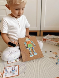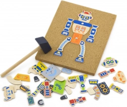 Ez a kreatív, robot témájú kalapálós készlet ideális választás 3 éves kortól. Minden fa elem előre fúrt lyukkal rendelkezik az egyszerű és biztonságos rögzítéshez a rajzszegek segítségével. A lekerekített élek és a minőségi kidolgozás biztonságos játékot és hosszú élettartamot garantálnak.