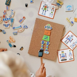 A csomag instrukciós kártyákat is tartalmaz 10 robotmintával, amelyek segítik a formaazonosítást, a kéz–szem koordinációt és a türelmet. A gyerekek minták szerint és teljesen szabadon is alkothatnak, ami támogatja a kreatív gondolkodást és az önállóságot.