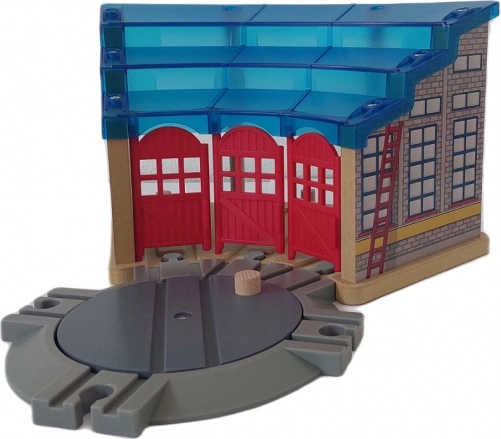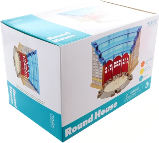 Nagy fűtőház, amely egyszerre három mozdony vagy vagon számára nyújt otthont és hátteret. Melege és nyugalma erőt ad a hosszú utazásokhoz a vasútvonalak keresztül-kasul bejárásához. A kétszintes tető tökéletes hozzáférést biztosít minden, a javításra váró vagy csak tisztításra és a következő útra való felkészítésre váró mozdonyhoz. Ennek a fűtőháznak saját forgókorongja van, amely nagy kényelmet nyújt a mozdonyok és vagonok ráállásakor és forgatásakor. A csomag tartalma: fűtőház és forgókorong. A fűtőház mérete forgókoronggal együtt: 34×34 cm, magasság 18 cm, a forgókorong átmérője 18 cm. Csomag mérete: 31×21×20 cm. A Maxim fa vonatpályái és kiegészítői minden más, piacon kapható fa vonatpályával kompatibilisek. 3 éves kortól.