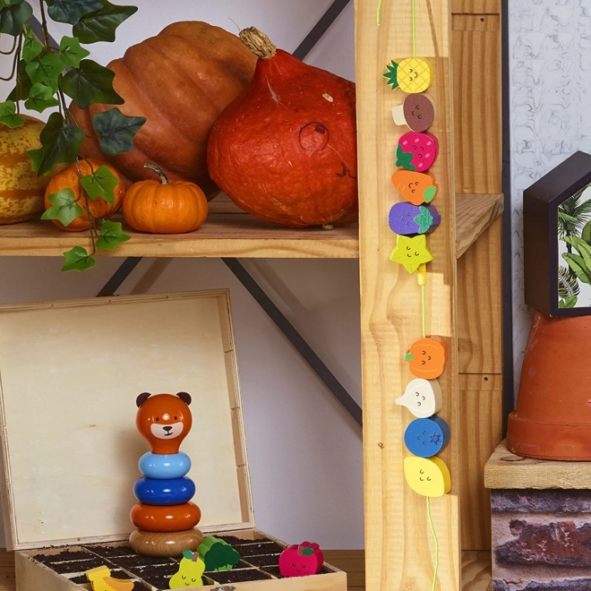 Fa gyöngyfűző, amely ideális 18 hónapos kortól kisgyermekek számára. Ez a játék segít a gyerekeknek fejleszteni a finommotorikát és a koordinációt. Az Andy Westface által tervezett gyönyörű illusztrációk miatt a gyöngyfűzés szórakoztató tevékenység lesz. A gyermekek megtanulják felismerni a színeket és formákat, miközben bővítik szókincsüket.