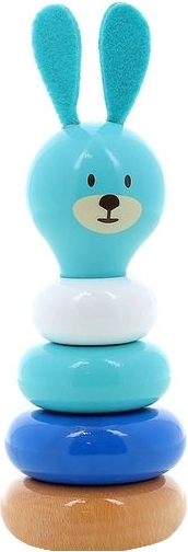Ez a nyuszi alakú rakodótorony lakkozott tömör fából készül, és lenyűgözi a legkisebb gyerekeket is, miközben segíti a finommotorika és a kéz-szem koordináció fejlesztését.