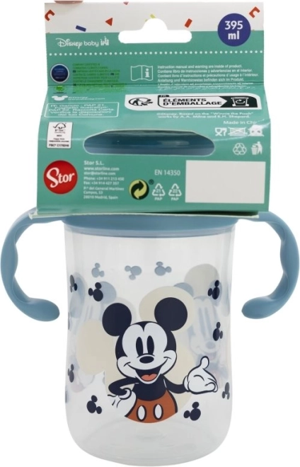 A bögre Mickey Mouse motívummal díszített, ami vonzó megjelenést kölcsönöz a terméknek a gyerekek számára.