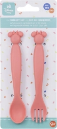 Két darabos műanyag gyerek evőeszköz készlet Minnie alakú véggel.