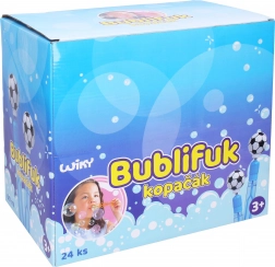Szórakozás kicsiknek és nagyoknak! Ez a focilabda mintás buborékfújó gyönyörű, tartós buborékokat készít, és ideális szabadtéri játékhoz. A praktikus 60 ml űrtartalomnak és a 28 cm hosszúságnak köszönhetően kényelmesen kézben tartható és könnyen használható. Remek választás a legnagyobb buborék versenyekhez és vidám pillanatokhoz a kertben, a játszótéren vagy ünnepségeken. 3 éves kortól ajánlott.