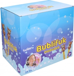 Szabadítsd fel az örömöt buborékokkal! Ez a cuki mackós buborékfújó rengeteg szórakozást nyújt 3 éves kortól. A 60 ml-es űrtartalomnak és a praktikus 28 cm-es hosszúságnak köszönhetően könnyedén készíthetsz kicsi és óriási buborékokat, és versenyezhetsz a barátokkal, kié lesz a legnagyobb.