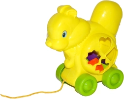 Ez az okos játék a mozgás örömét ötvözi a tanulással. A zsinóron húzható állatka négy keréken simán gurul, miközben a teste formaberakóként szolgál. A gyerekek gyakorolják a szem–kéz koordinációt, a logikus gondolkodást és a vizuális észlelést.