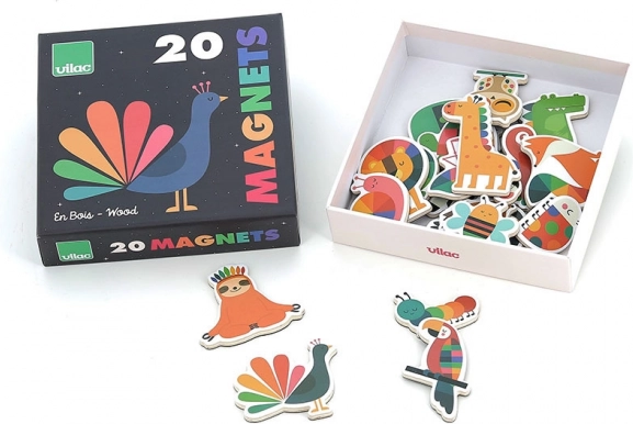 A vidám mágnesek szivárványos állatmotívumokkal (elefánt, róka, tukán és mások) színeket és örömöt hoznak a gyerekszobába. Minőségi fa kivitelüknek köszönhetően kiválóak mindennapos játékhoz, illetve dekorációként a hűtőn vagy a mágneses táblán.