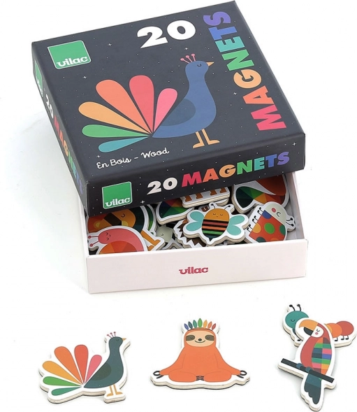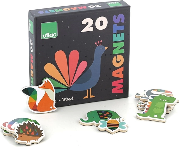Vidd el a gyerekeket a varázslatos, szivárványos világba a VILAC 20 darabos, fából készült mágnes készletével, Andy Westface illusztrációi alapján. Az állatkák feldíszítik a hűtőt vagy a táblát, és támogatják a képzeletet és a játékot. A mágnesek minden mágneses felületen jól tapadnak, és környezetkímélő módon készülnek.