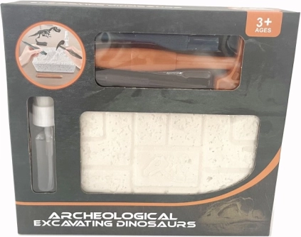 - Kalapács, véső, blokk elrejtett darabokkal, dinoszaurusz csontváz (összeszerelhető)