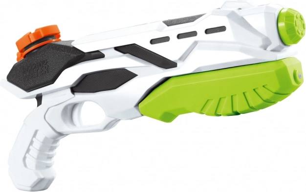 Ez a vízpisztoly rengeteg szórakozást nyújt az egész családnak. A kompakt méretnek köszönhetően kényelmes a fogása és egyszerű a használata, így a kisebb gyerekek is könnyen bekapcsolódhatnak az akcióba. Ideális felfrissüléshez a hőségben és versengő játékokhoz a barátokkal.