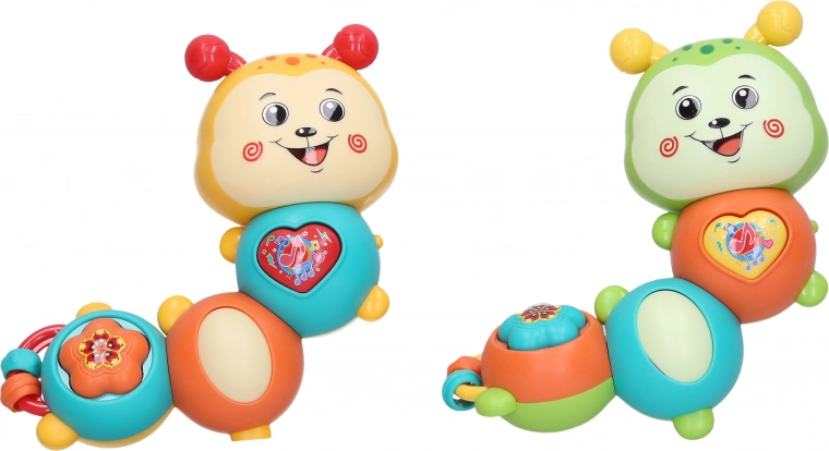 A hernyó formájú csörgő több mint egyszerű szórakozás a gyermekének. Fény- és hanghatásokkal rendelkezik, amelyek fejlesztik a gyermekek érzékelését. Tartalmaz: