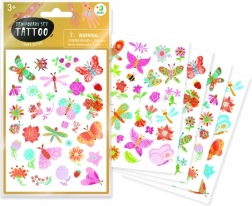 A tetoválás könnyen eltávolítható szappannal vagy olajjal. A csomagban négy lap tetoválás található, különféle alkalmakra ideális. Vonzó és biztonságos 3 éves kortól.