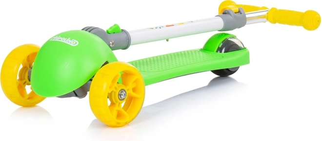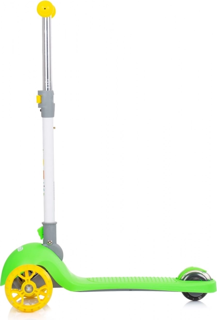Ajándékozzon a gyerekeknek szórakoztató és biztonságos gurulást a CHIPOLINO Funky rollerrel zöld‑sárga színben. A könnyű alumínium váz könnyű kezelhetőséget biztosít, míg a széles csúszásgátló fellépő és a gumírozott markolatok stabil fogást nyújtanak. A színes LED diódák az első és hátsó kerekekben mozgás közben felgyulladnak, növelve a láthatóságot.