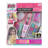 Készlet kis fodrászoknak. A csomag tartalmaz hajkrétákat, applikátort, hajkefét és két csatot. Dobozban csomagolva. A csomag mérete kb. 26×31×6 cm. Ajánlott életkor: 5+