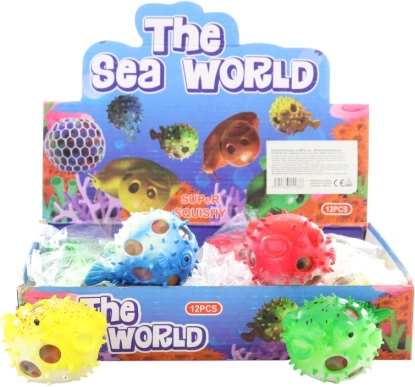 Antistressz nyomkodós labda gömbölyűhal formában, amelyből anyag préselődik ki. Méret kb. 9×5×6 cm. Zacskóban csomagolva. 3 éves kortól.