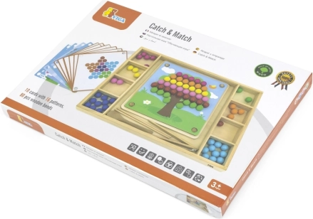 Fa játék "Kapd el és Rendezd" a Viga márkától 3 éves kortól ajánlott, amely fejleszti nemcsak a színek és minták felismerésének képességét, hanem a kéz- és szemkoordinációt és a koncentrációt is.