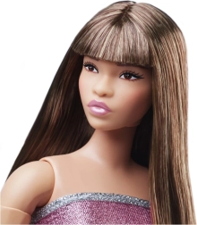 Barbie Signature Looks remek darab a divat szerelmeseinek és gyűjtőknek. A baba artikulált ízületekkel rendelkezik, ami a tökéletes pozicionálást és fotózást teszi lehetővé. Az új kollekció, amelyet a 90-es évek és modern divatbemutatók inspiráltak, pasztell színekben és fémes akcentusokkal készült.