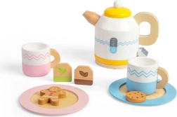 Biztosítson lehetőséget gyermekeinek, hogy vendéglátó szerepbe bújjanak ezzel a két fő részére készült tea készlettel. Tartalmaz minden szükséges eszközt, és kiváló minőségű fából készült, ami biztosítja a tartósságot és szórakozást.