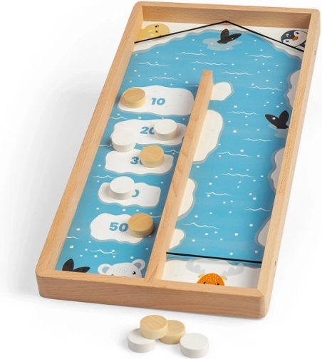 Ez a vonzó, fából készült korongjáték a Bigjigs Toys-tól a jeges tájak hangulatát hozza el közvetlenül az asztalára. A játékosok a sima felületen csúsztatják a korongokat, és igyekeznek azokat a legkedvezőbb pontmezőkben megállítani – minden pontos csúsztatás több pontot és még nagyobb játékélményt jelent.
