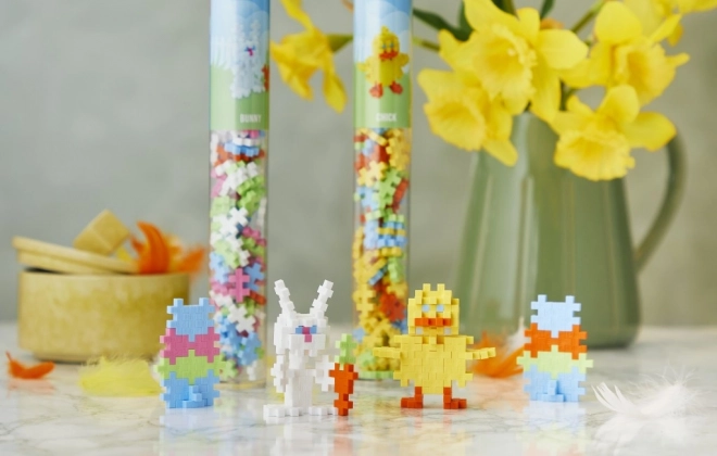 Élvezze a kreatív szórakozást a Plus-Plus építőkészlettel Csibe, amely 100 darabkát tartalmaz praktikus tubusban, ideális utazáshoz.