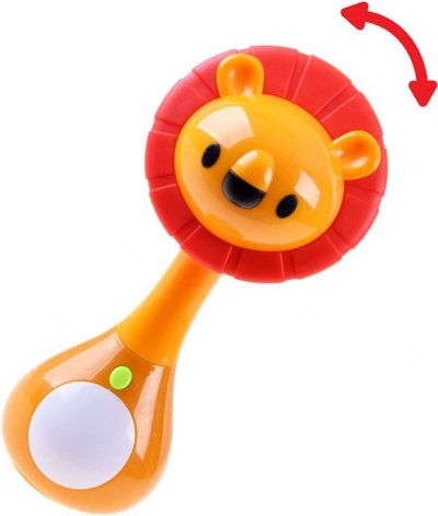 Aranyos, interaktív, oroszlán formájú csörgő vidám dallamokkal, fényhatásokkal és több játékmóddal szórakoztatja a kicsiket. Ergonomikus kialakításának köszönhetően jól illik a kis kezekbe, a kiválasztott részek puha gumis anyagból készültek, így rágókaként is használhatók. A csörgő 3 játékmódot kínál, a világító pocak színt vált, és kellemes hangokkal fejleszti a baba hallását és motorikáját.