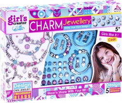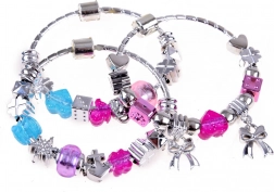 A szett 3 műanyag karkötőt, 2 színes zsinórt, rózsaszín és kék gyöngyöket, valamint ezüstszínű charms medálokat tartalmaz – csak kezdd el az alkotást.