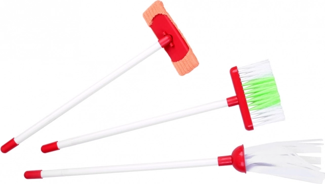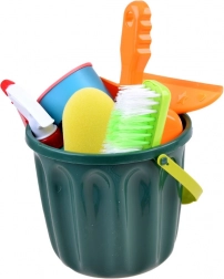 Teljes felszerelés vödörrel, felmosóval, seprűvel, lapáttal, kefével, szivaccsal és további kiegészítőkkel a valósághű takarítós játékhoz.