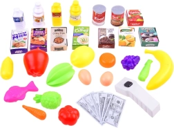 Gyerek szupermarket pénztárral és kiegészítőkkel, 44 darab