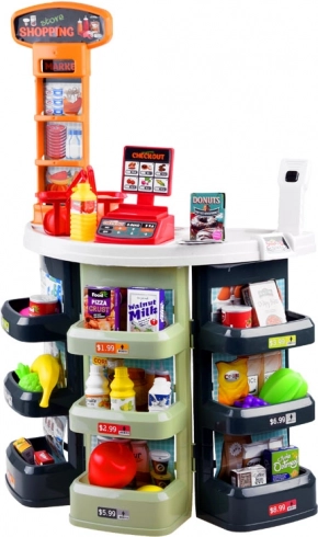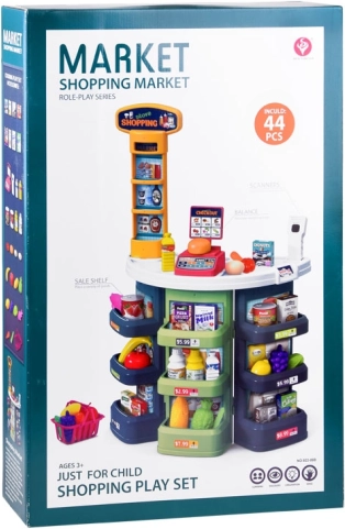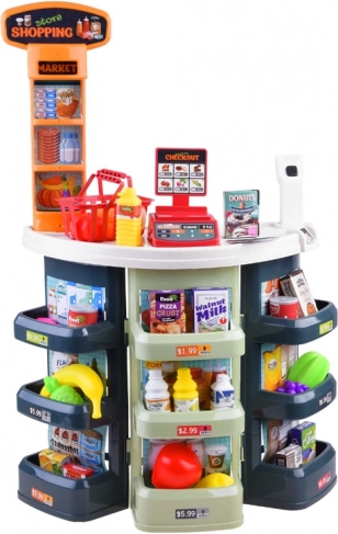 A gyerekbolt pulttal, polcokkal és pénztárral kis piacot varázsol a szobából. A szkennernek, kosárnak és játékpénznek köszönhetően a gyerekek valódi boltban történő vásárlást és eladást élhetnek át. A valósághű kiegészítők – a palackoktól és konzervdobozoktól a gyümölcsökig és zöldségekig – lebilincselő élménnyé teszik a játékot.