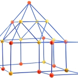 A kék rudak és a sokszögű csatlakozók kemény műanyagból készülnek, tartják a formát és stabilitást biztosítanak még nagyobb projektek esetén is.