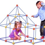 Ez az univerzális építőkészlet hosszú kék rudakkal és narancs-sárga csatlakozókkal lehetővé teszi tartós, térbeli szerkezetek készítését. Erős, nem hajló csövecskék és stabil, sokszögű csatlakozók nagyobb építményeknél is tartják a formát. A csomag része egy ötletfüzet is a gyors kezdéshez.
