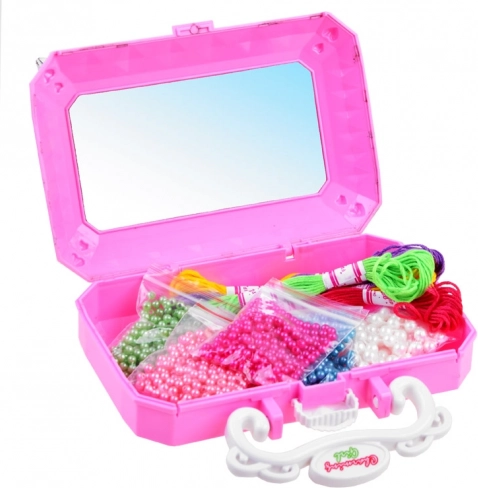 Ez a kreatív készlet ideális a gyerekeknek az első lépésekhez a DIY ékszerkészítés világában. Az áttekinthető szövőállványnak köszönhetően a gyerekek könnyedén készíthetnek színes karkötőket fényes gyöngyökkel, amelyek személyes ajándékként is örömet okoznak anyának, testvérnek vagy barátnak. A praktikus, tükörrel ellátott műanyag ládika segít rendben tartani az összes kiegészítőt, és helyet biztosít a kész alkotásoknak.
