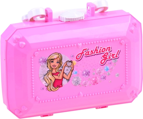 Praktikus műanyag ládika tükörrel, amelyben elfér a tartozékok nagy része és a kész ékszerek is – tökéletes utazáshoz.