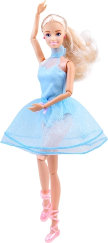 Fedezd fel a balett báját az Anlily babával világoskék ruhában és rózsaszín balettcipőben. A könyök- és térdízületeknek köszönhetően könnyen felvesz táncpózokat, így ideális a kreatív és képzeletgazdag játékhoz. Hosszú szőke haja fésülésre és frizurakészítésre csábít.