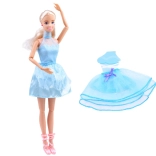 A csomag része egy extra, csillogó kék tüllszoknya lila szalaggal a gyors öltözékváltáshoz.
