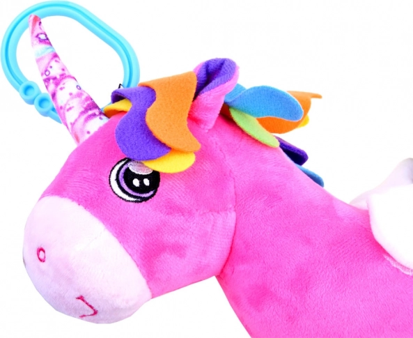 Ez a pihe-puha egyszarvú finom, játékos színeivel első pillantásra elbűvöli a kicsiket. A biztonságos, hímzett szemek csökkentik az apró részek lenyelésének kockázatát, míg a sörényen és a farkon található színes címkék megfogásra ösztönöznek és edzik az ujjacskákat. A praktikus klip gyors rögzítést tesz lehetővé babakocsira, autósülésre vagy kiságyra, így a játék mindig kéznél van.