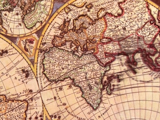 A puzzle az ókori világtérkép motívummal csodálatos lehetőséget kínál a kikapcsolódásra és a térbeli képzelőerő fejlesztésére. A kirakás után egy kb. 50 cm x 75 cm méretű képet hozhat létre, miközben egy darab mérete kb. 3 cm x 2 cm.