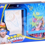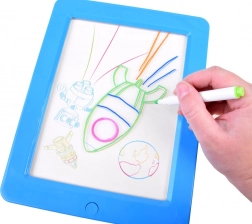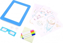 A világító tábla remek eszköz a fantázia, a kreativitás és a finommotorika fejlesztéséhez. A gyerekek rajzolhatnak saját motívumokat, vagy könnyedén átrajzolhatják a mellékelt kártyák sablonjait, majd behelyezhetik azokat a LED világítással ellátott keretbe. A felvett 3D szemüveggel alkotásaik térhatásúvá válnak, ami lenyűgözi őket.