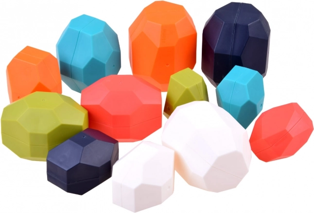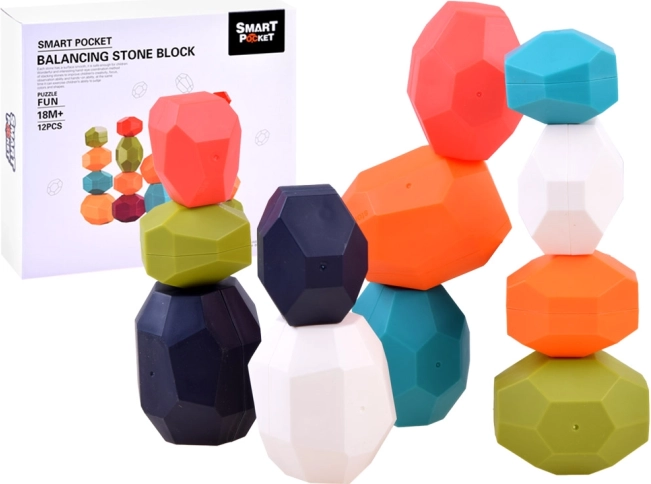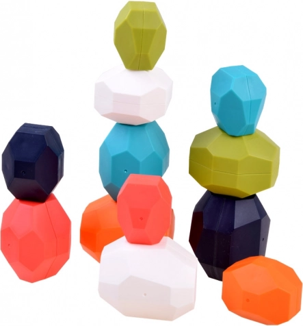A csomagban 12 különböző méretű, alakú és színű kő található, melyek minőségi műanyagból készültek. A legnagyobb kő körülbelül 7,5 cm x 5 cm x 5 cm, míg a legkisebb körülbelül 5 cm x 3,5 cm x 3,5 cm. A készlet ideális ajándéknak, és az építőkockák tárolásához is.