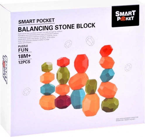 A kövek lapos oldalaiknak köszönhetően a gyerekek különböző rakodási kombinációkat hoznak létre.