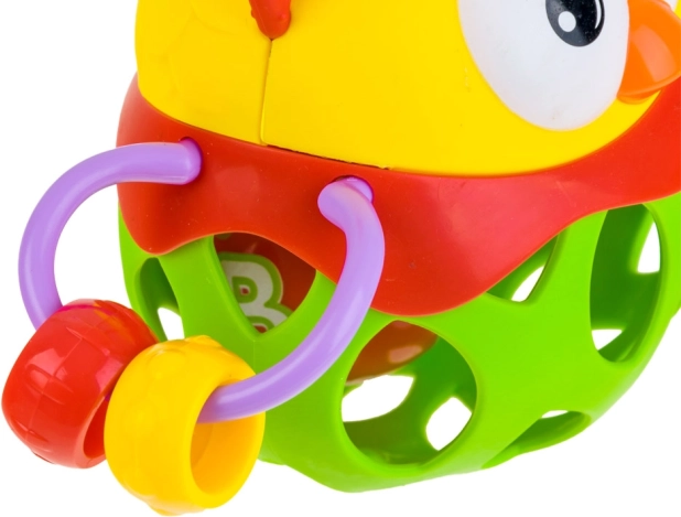 Puhább, lyukas csörgő állatka formában sok szórakozást nyújt minden babának. Az állatka belsejében található labda játék közben csörög. A játék rugalmas, átlátszó szerkezete miatt könnyen megfogható. A lyukas félgömb összenyomás után visszaáll az eredeti formájába.<\/span><\/p>.