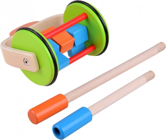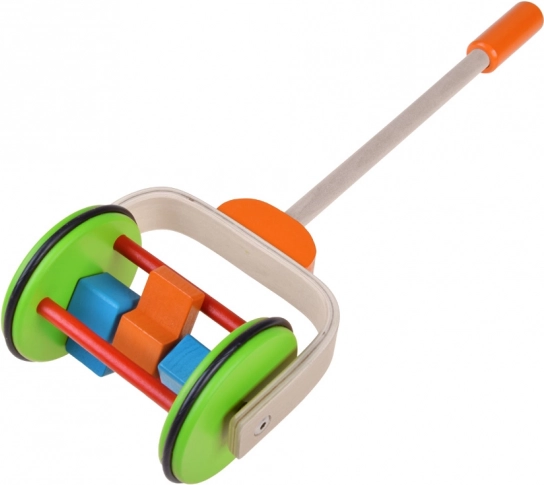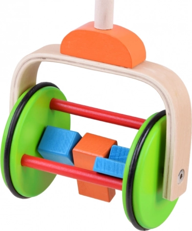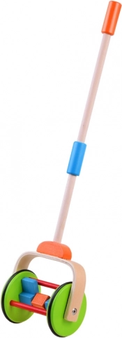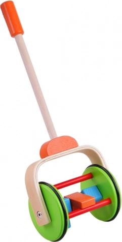 A színes fa játék tologatáshoz úgy van tervezve, hogy támogassa a gyerekeket az első lépéseik során. A fogantyú a gyermek magasságához igazított, állítható magasságú. A kerekek gumiszíjjal vannak bevonva, amely biztosítja a sima mozgást és a padló védelmét.