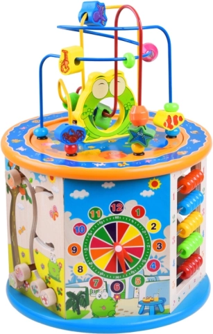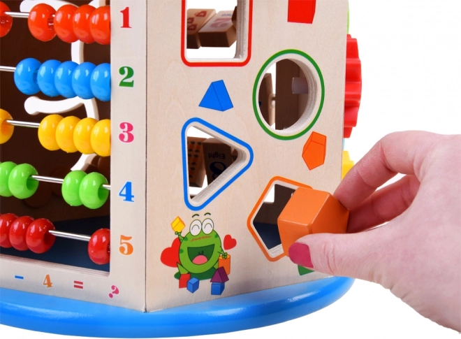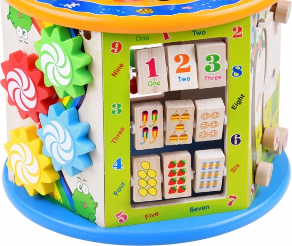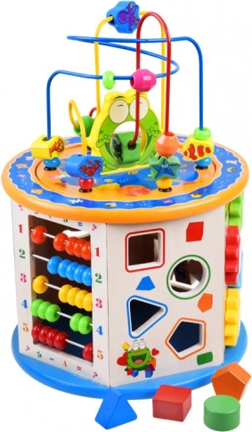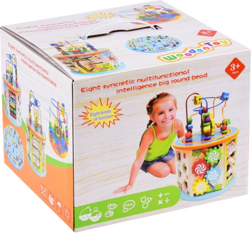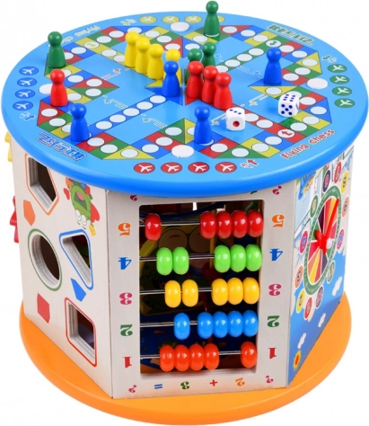 Fa oktató kocka 8 az 1-ben multifunkcionális játék gyerekek számára, amely oktatási és szórakoztató elemeket egyesít. Lehetővé teszi a motorikus képességek fejlesztését és a gyermek kognitív képességeinek támogatását interaktív játék révén.