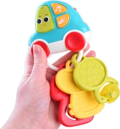 Keres olyan játékot, amely szórakoztat és közben támogatja babája fejlődését? Az interaktív kulcsok zenét, fényt és változatos textúrákat kombinálnak gazdag érzékszervi ingerekért. A kicsi 5 vidám dallamot, valósághű autóhangokat (ajtónyitás, duda, tolatás, járó motor, fékezés) és rövid, vicces effekteket élvezhet, amelyeket villogó fény kísér. Könnyű felépítése és ergonomikus formája a pici kezekhez igazodik.