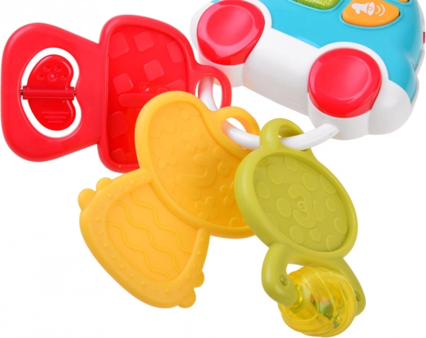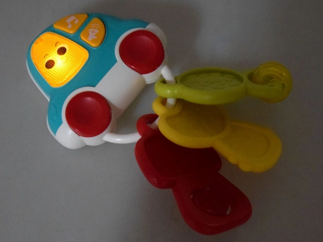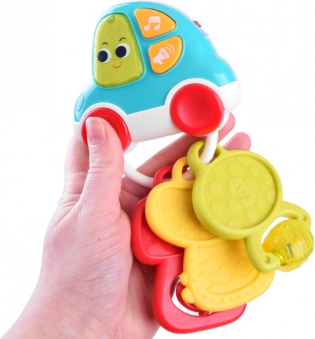 Vidám interaktív babakulcsok ideális első játékként szolgálnak az érzékelés és a finommotorika ösztönzésére. Kínálnak 5 dallamot, valósághű autóhangokat, villogó fényt és háromféle kulcsot: puha rágókát, gyöngyös csörgőt és forgó elemmel ellátott kulcsot. Nem hiányzik a 2 hangerőszint és az automatikus alvó mód sem a nyugodt játékért otthon és útközben.