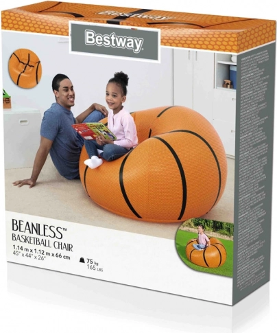 Élvezze a szórakozást és a lazítást ezen a kényelmes, puha fotelen, amely megjelenésében hűen idézi a kosárlabdalabdát. Remekül kiegészíti a kosárlabda-rajongók enteriőrjét, és modern, játékos stílust kölcsönöz a térnek. A sima felület könnyen tisztítható, a strapabíró PVC anyag pedig hosszú élettartamot és egyszerű karbantartást biztosít.